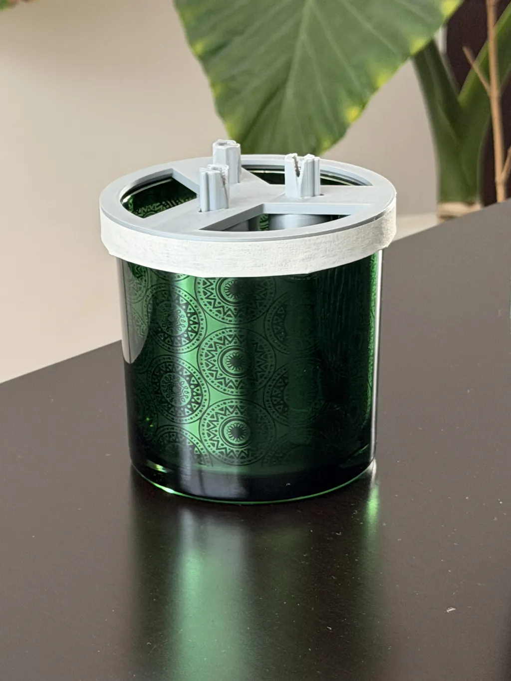 Una herramienta súper útil que me ayuda a tener mechas en el mismo lugar, siempre; esto ayuda mucho especialmente cuando estás haciendo pruebas de quemado. Le agregué un poquito de cinta alrededor eliminar el juego que tienen con los vasos Mónaco y los de BBW.