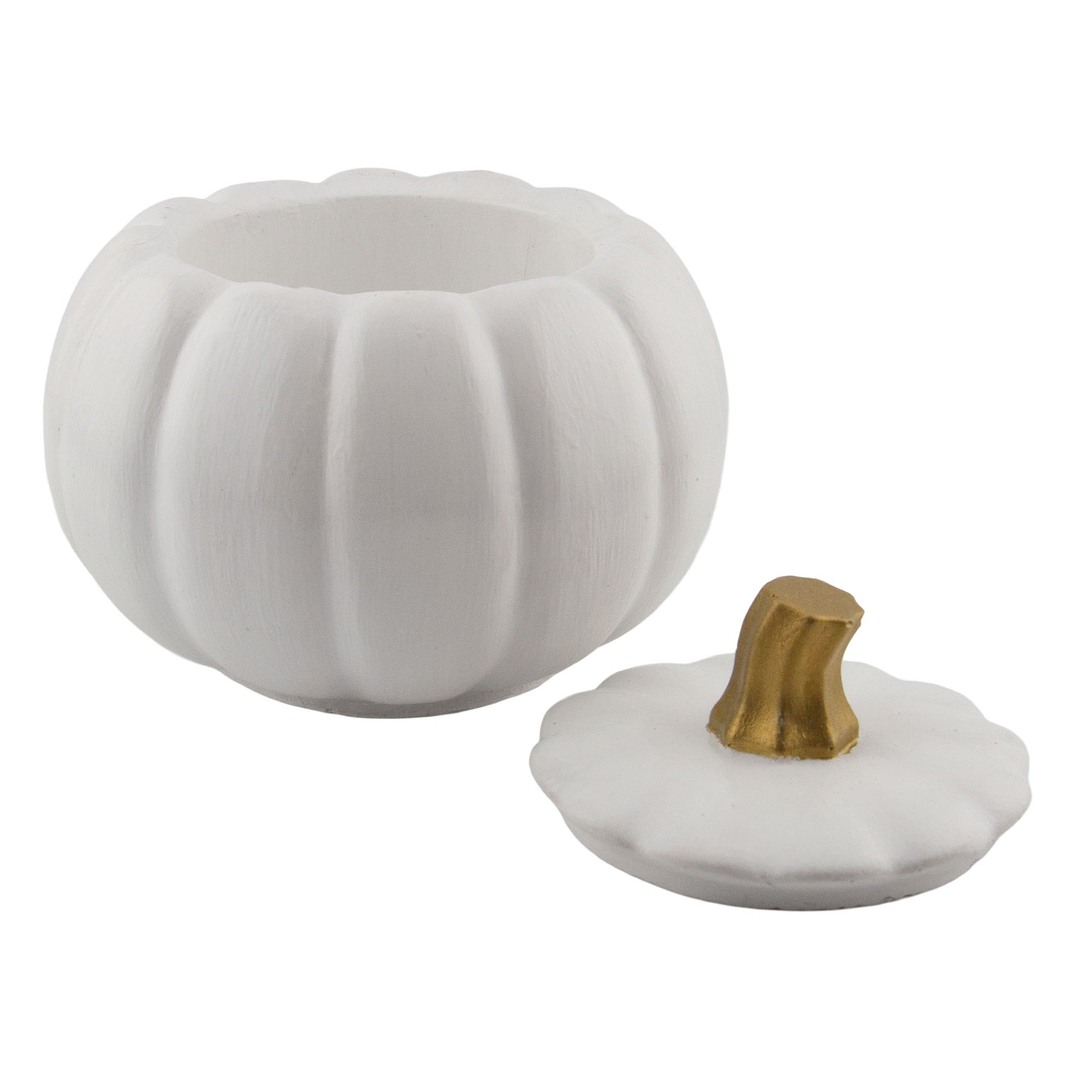 140ml - Colección Hechizo - Calabaza de Yeso para Velas - Blanco / Dorado (Edición Especial de Halloween)
