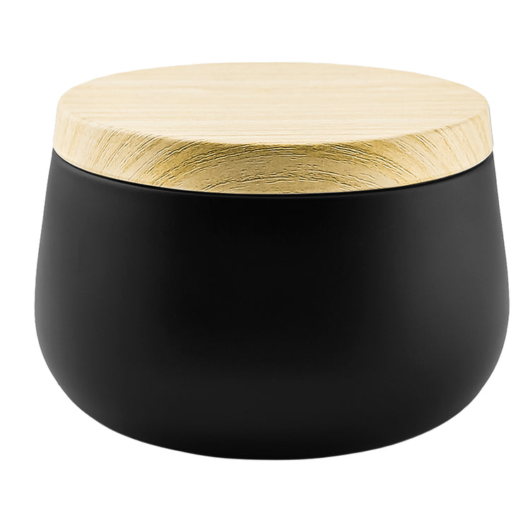 260ml - Tokio Lata de Aluminio Redonda para velas - Negro Mate - Adentro: Dorado - Tapa Color Madera