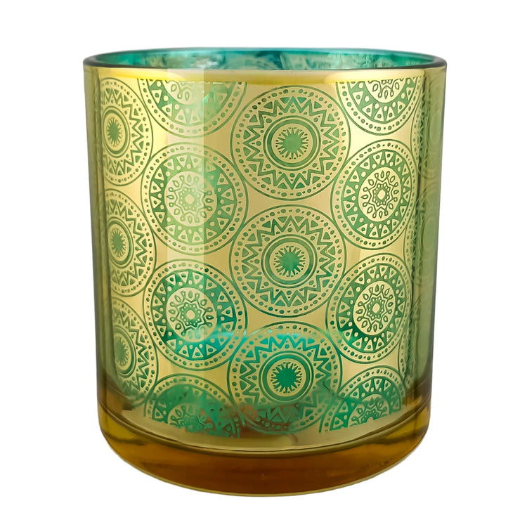 Tapas y accesorios para: 300ml - Mónaco Vaso de vidrio para velas - Dorado / Azul Turquesa con Mandalas Zen Paz Vaso para Vela Meditación - Metálico