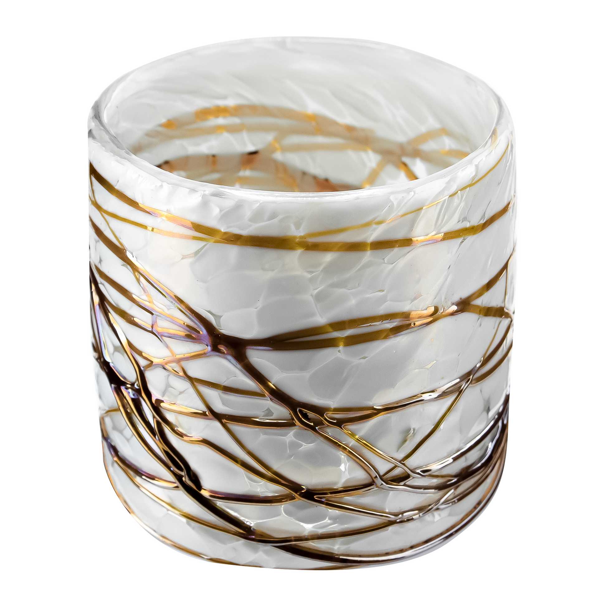 Accesorios para: 500ml - Florencia Vaso de vidrio soplado artesanal - Blanco Marmoleado / Telarañas Dorado Caramelo - Hecho a mano