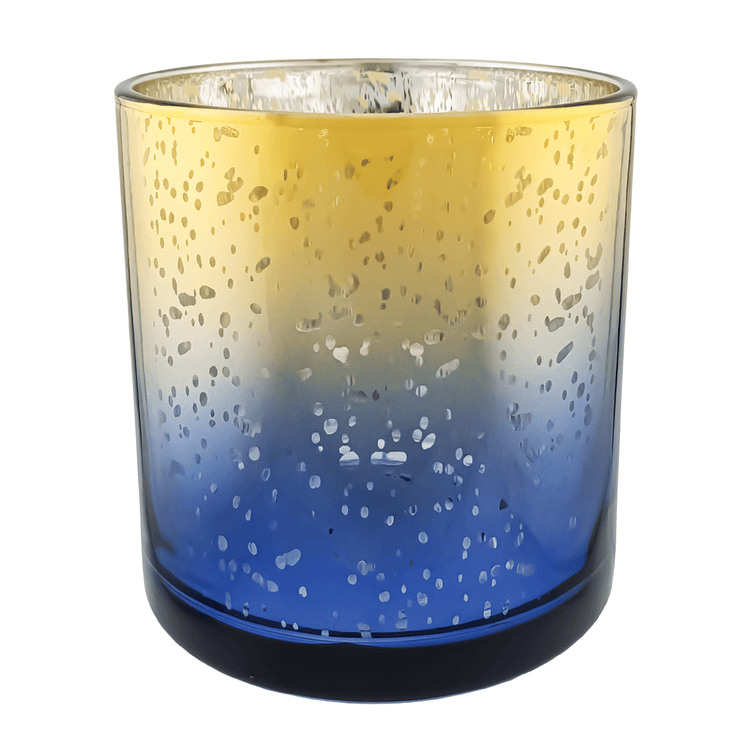 Tapas y accesorios para: 560ml - Mónaco Vaso de vidrio para velas - Dorado y Azul con Salpicaduras Metálico