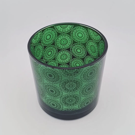 Tapas y accesorios para: 560ml - Mónaco Vaso de vidrio para velas - Verde / Negro con Mandalas Zen Paz Vaso para Vela Meditación Metálico