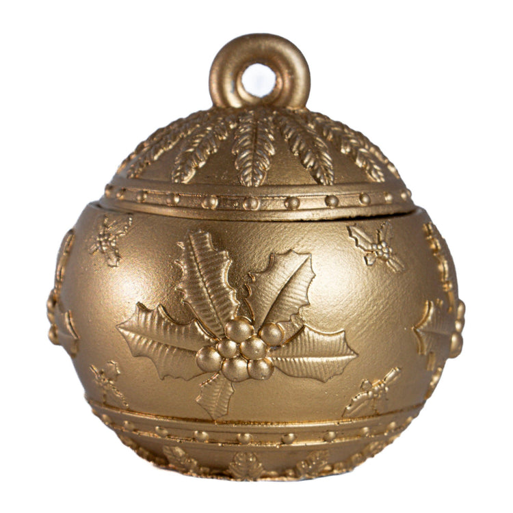 El acabado dorado transforma esta esfera de concreto artesanal en un verdadero símbolo navideño. La pintura metálica, con matices brillantes, resalta los relieves festivos inspirados en la temporada, desde hojas y motivos decorativos que evocan tradición hasta detalles que cobran vida bajo la luz de la vela. La superficie artesanal del concreto aporta carácter y autenticidad, mientras que el dorado añade un toque cálido y elegante. El resultado es una pieza robusta y sofisticada que, además de contener tus velas, se convierte en protagonista de la decoración navideña, llenando el espacio de luz y calidez.
