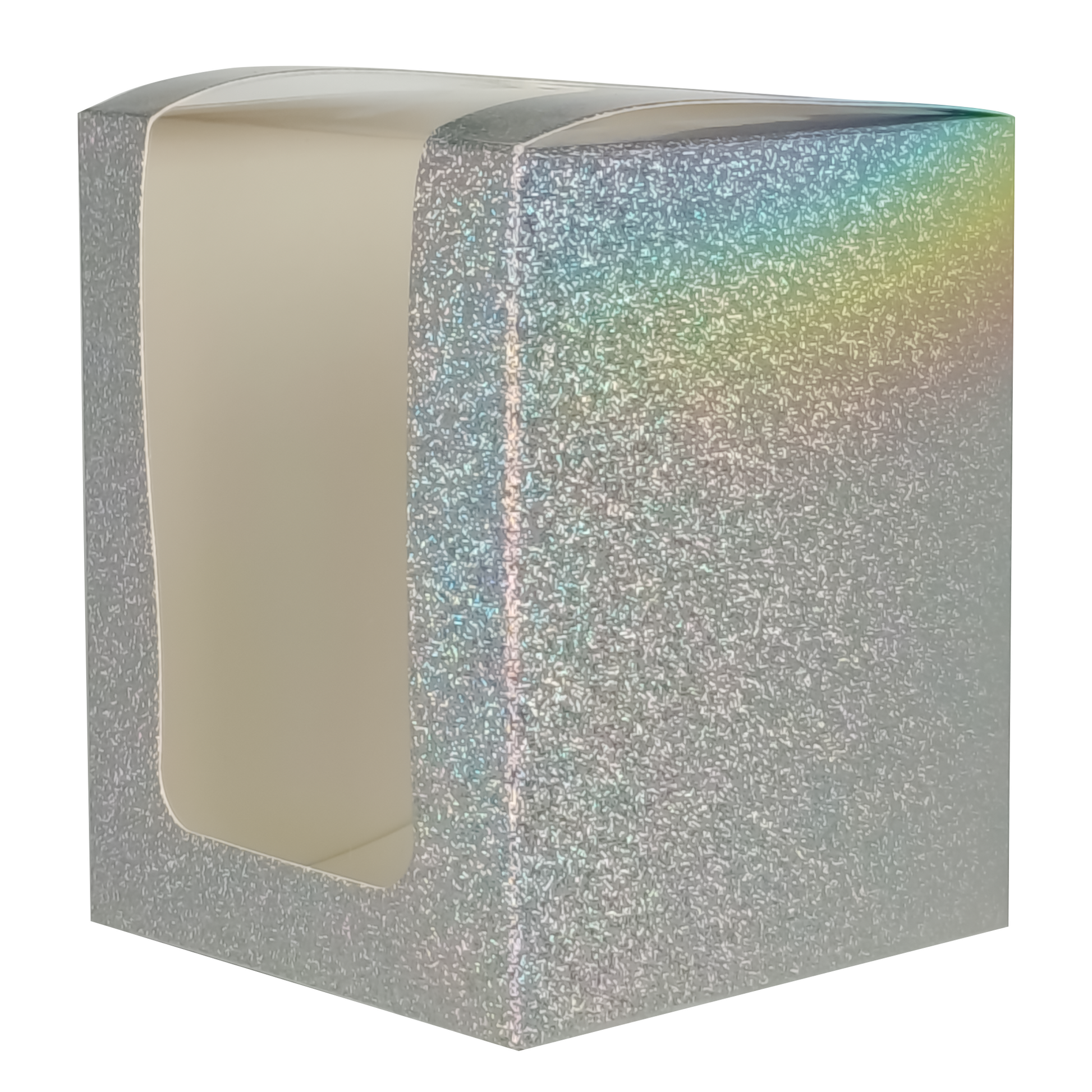 Caja Decorativa Cuadrada para Velas – Plateada con Brillos - Ventana Transparente | Chica 8x10 cm