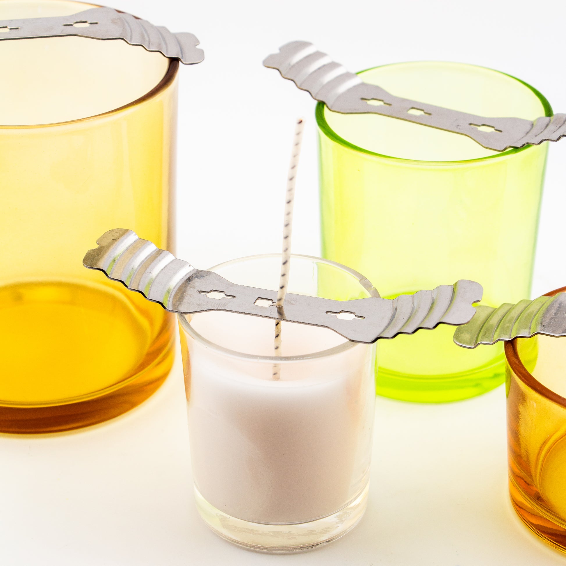 Fabricado en metal, este accesorio es reutilizable, resistente al calor y compatible con la mayoría de frascos. Su diseño incluye 3 orificios multinivel, lo que te permite trabajar con una, dos o tres mechas, ideal para velas grandes o de quemado uniforme.