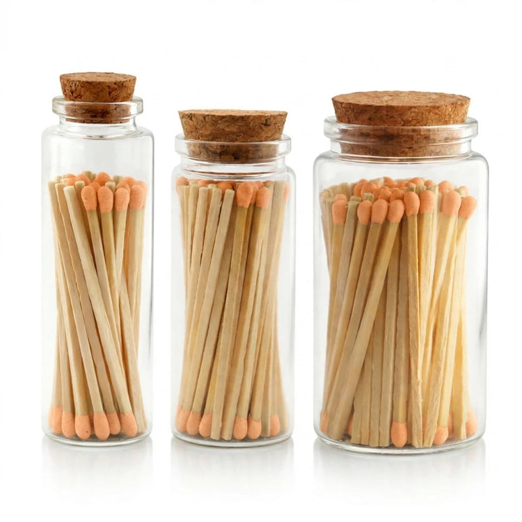 El frasco de vidrio con corcho no solo protege los cerillos, también convierte este producto en un detalle visualmente atractivo, perfecto para complementar colecciones de accesorios para velas, integrar en kits para hacer velas, acompañar regalos o agregar valor a la presentación de una marca de velas artesanales. Es un producto pensado para quienes buscan funcionalidad sin dejar de lado la estética.