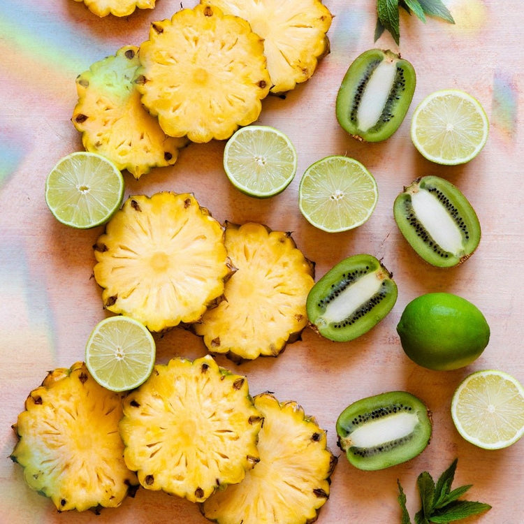 El aceite aromático Piña y Kiwi es un giro sofisticado a una clásica fragancia frutal. Se abre con notas de salida de fresa dulce y kiwi vibrante. Un corazón jugoso de piña, peonía y muguet se equilibra con un toque de clavo, gálbano y almizcle.