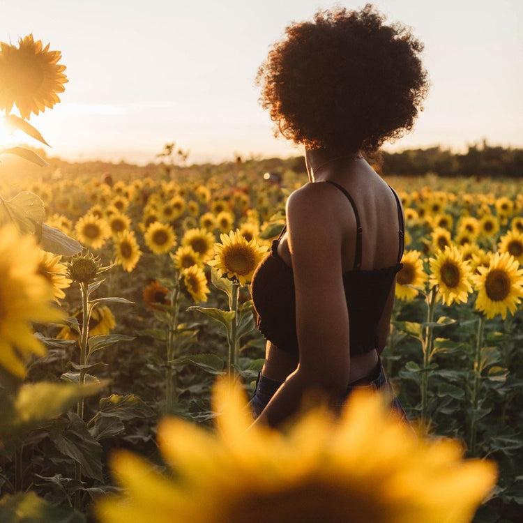 Una fragancia floral profunda y sofisticada. Combina la calidez del girasol con notas frescas de bergamota y verbena, envueltas en un corazón floral de lirio y grosella negra. El fondo terroso de vetiver, sándalo, ámbar y almizcle le da un toque elegante y duradero.