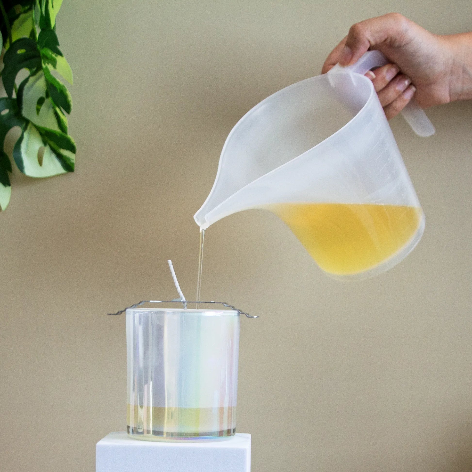Olvídate de los derrames y las manos temblorosas. Esta jarra vertedora de plástico con pico largo está diseñada especialmente para que viertas tu cera justo donde la necesitas: directamente al centro de tus vasos para velas, sin ensuciar los bordes ni desperdiciar producto.