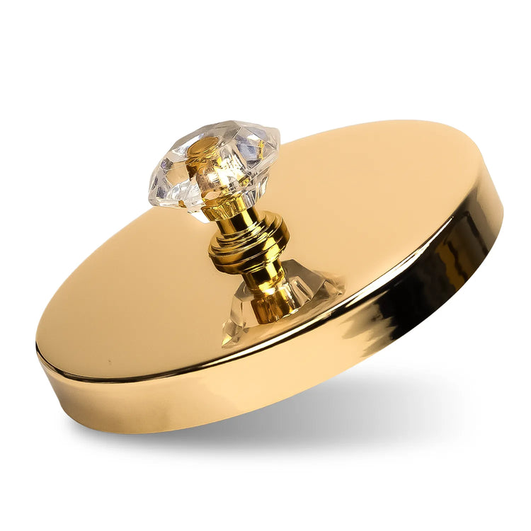 Dale un toque de lujo y distinción a tus creaciones con nuestra tapa metálica para vela dorada con perilla tipo diamante. Fabricada en aluminio de alta calidad con acabado espejo y una perilla facetada estilo joya, esta tapa transforma cualquier vela en una pieza sofisticada y visualmente impactante.
