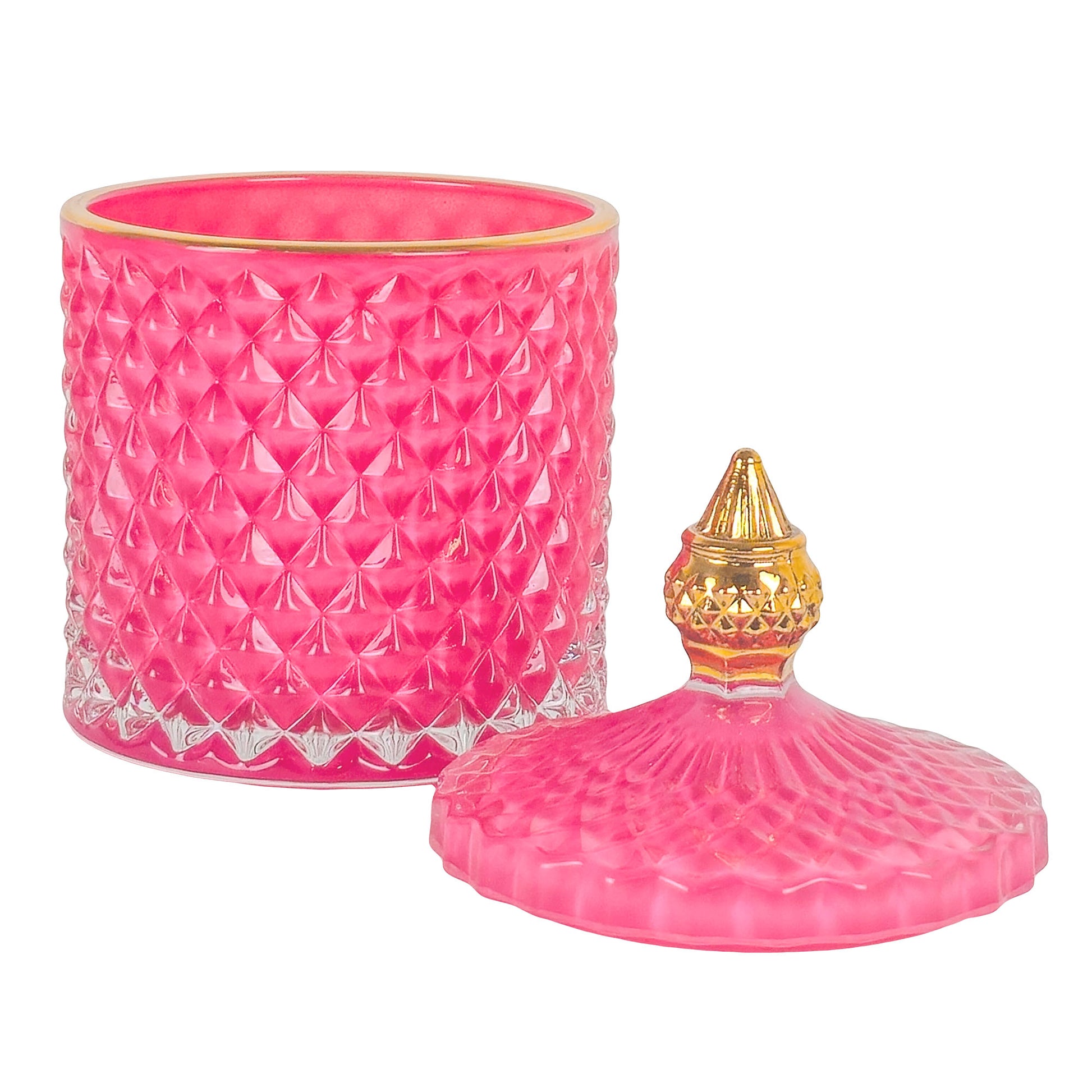 Accesorios para: 300ml - París Vaso de lujo de vidrio para velas - Rosa Pink con Oro